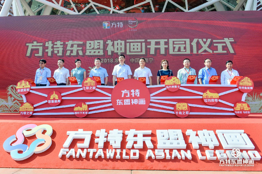 8月8日,南寧方特東盟神畫主題樂園盛大開園。南寧青秀山風景名勝旅游區管理委員會主任藍飛、南寧市旅游發展委員會副主任林慧超、馬來西亞駐南寧總領事館總領事黃奕瑞、泰王國駐南寧總領事館總領事蔡樂蓬蒂窩拉衛、柬埔寨王國駐南寧總領事館領事宋索撇、老撾人民共和國駐南寧總領事館領事隨員博學、華強方特集團總裁劉道強、華強方特(南寧)旅游發展有限公司董事長任海平等出席開園儀式。