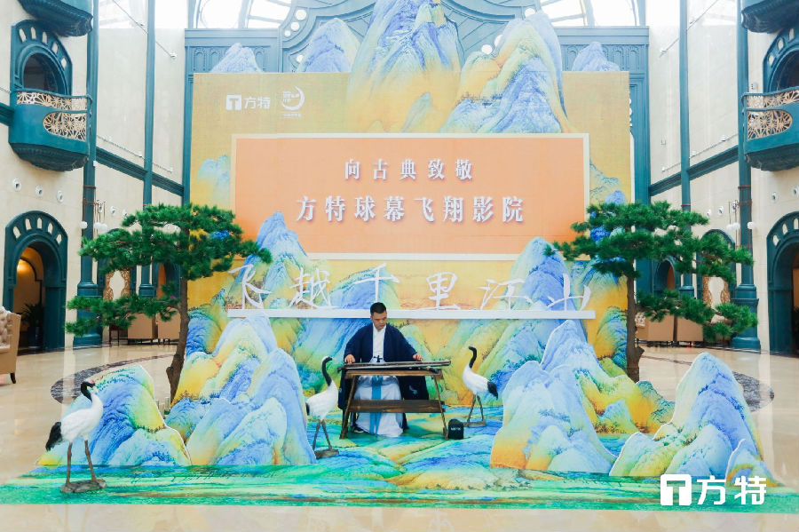 8月11日,華強方特重磅打造的中國畫題材球幕飛翔影院《飛越千里江山》盛大開啟。在方特主題樂園,游客可通過方特獨創的“飛行觀畫 ”模式,在直徑 22 米的巨幅球形銀幕前,領略《千里江山圖》的傳世風采,感受青綠山水巔峰之作的美妙意境與磅礴氣勢