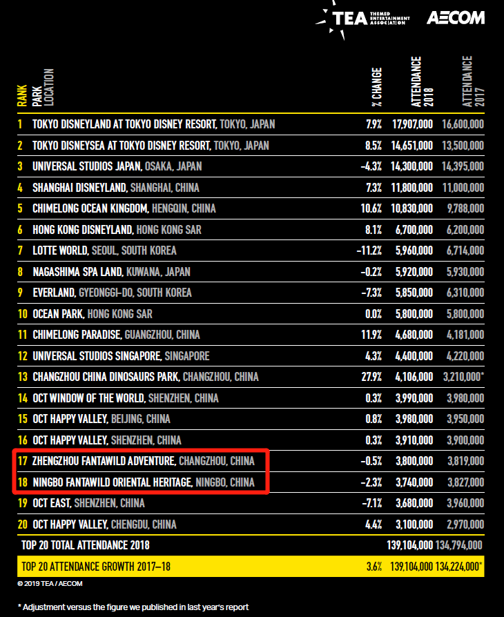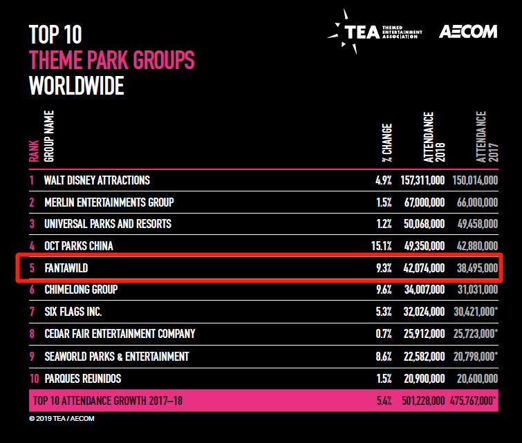 全球主題樂園集團排名:方特連續(xù)三年位居全球第五