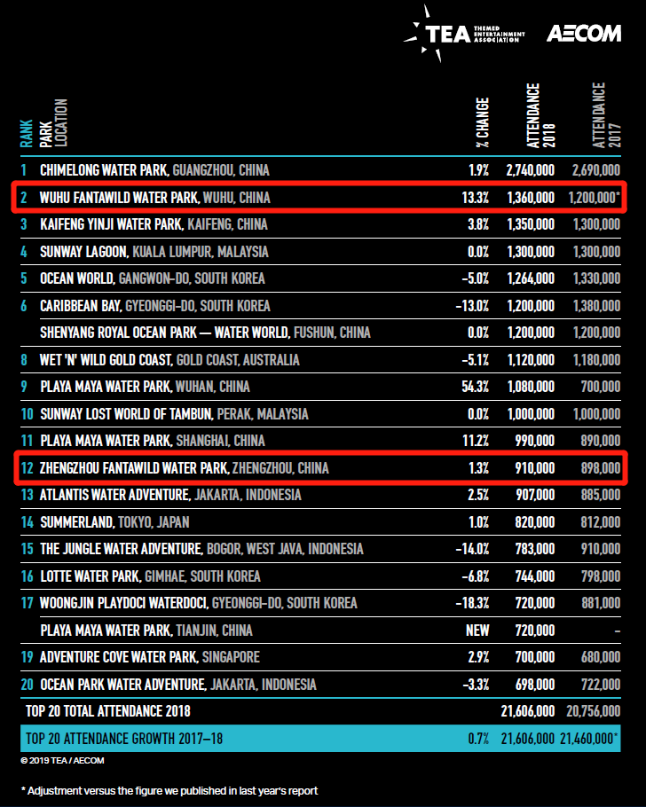 亞太地區(qū)水上樂園排名:蕪湖、鄭州水上樂園分列第2、12名