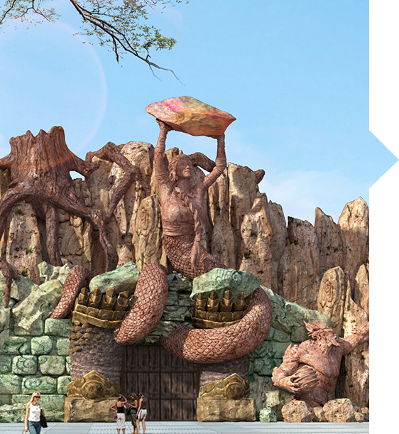 “方特恐龍王國”是以恐龍文化和古蜀文明為主題的大型文化高科技旅游景區。景區將億萬年前的恐龍奧秘與神秘的古蜀文明巧妙融合,高度還原了史前的原始叢林、濕地沼澤、火山峽谷等地形風貌,精心打造了一系列演繹恐龍故事、探險恐龍世界、科普恐龍知識、探秘古蜀文明的沉浸式互動體驗項目,創新傳承了自貢的恐龍文化、四川的古蜀文化,為游客創造了一個過去與現在、幻想與現實交融的奇幻世界。