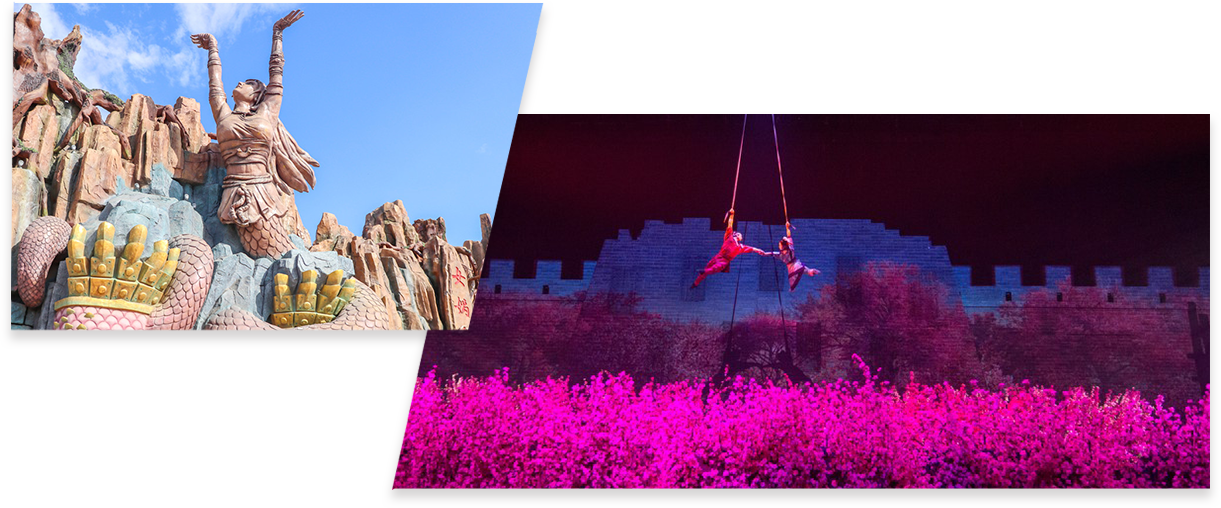 方特國色春秋以華夏五千年歷史文明和地域特色文化為核心,深度萃取神話傳說、巴蜀文化、趙地文化、女媧文化、成語文化及民間藝術等多元文化精髓,融合現代科技創新打造系列震撼高科技游樂項目,讓游客在歡樂中領略傳統文化的獨特魅力。