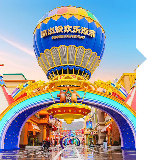 熊出沒歡樂港灣以華強方特旗下國民級動漫IP《熊出沒》為主題精心打造,擁有大型主題商業街區、熊出沒水上樂園、熊出沒主題酒店及眾多室內外特色游樂項目,配套風味餐飲、特色商店、休閑娛樂等豐富業態,為廣大游客提供集“吃、住、游、購、娛”于一體的全方位文旅體驗,是合家歡休閑度假目的地。